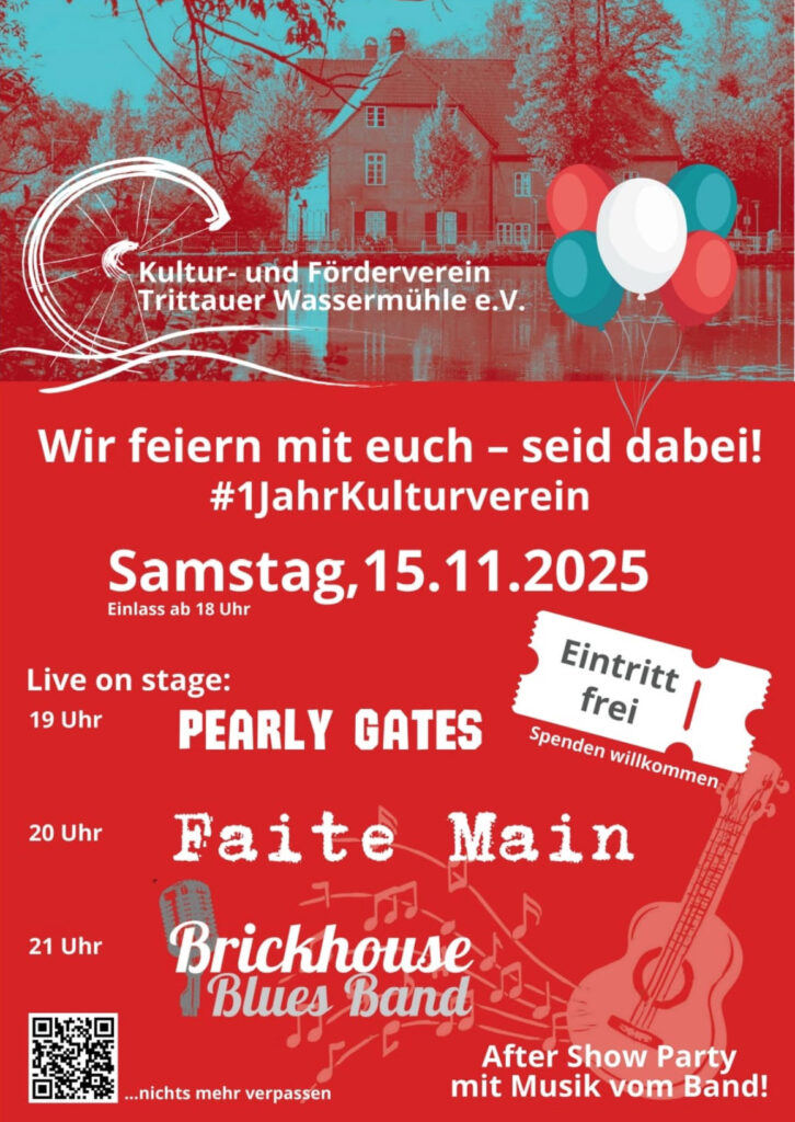 Unser Ziel ist es, die Kultur in Trittau zu bereichern – mit Konzerten, Lesungen, Workshops und mehr. Gleichzeitig setzen wir uns für einen barrierefreien Anbau an die Wassermühle ein, der moderne Veranstaltungsräume und einen einladenden Gastronomiebereich bietet. Die Wassermühle soll ein Ort der Vielfalt und Offenheit für alle sein.